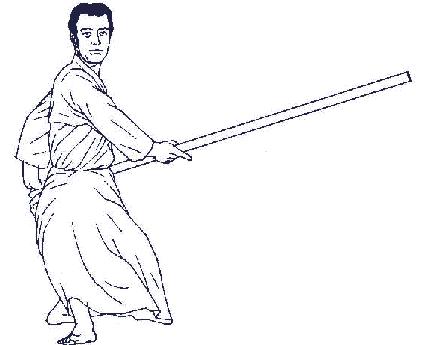 Der Langstock wird von den Karateka mit kurzen geradlinigen Bewegungen benutzt, während diese Waffe in den "alten Schulen" (koryu) der japanischen Hauptinseln mit weiten kreisförmigen Bewegungen gehandhabt wird.