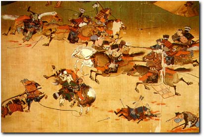 Die Samurai wanderten schnell an die Spitze der sozialen Hierarchie und genossen viele Privilegien. Als berittene Bogenschützen (teuer in Ausbildung und Unterhalt !) wurden sie zu Elitekriegern herangezogen. Ihre übersteigerten Ehrvorstellungen und besonderen Pflichten führten unter konfuzianistischen und zen-buddistischen Einfluß zur Bildung eines Prinzipienkodex namens Bushido (der Weg des kleinen Busches ? oder der Weg des Kriegers).
